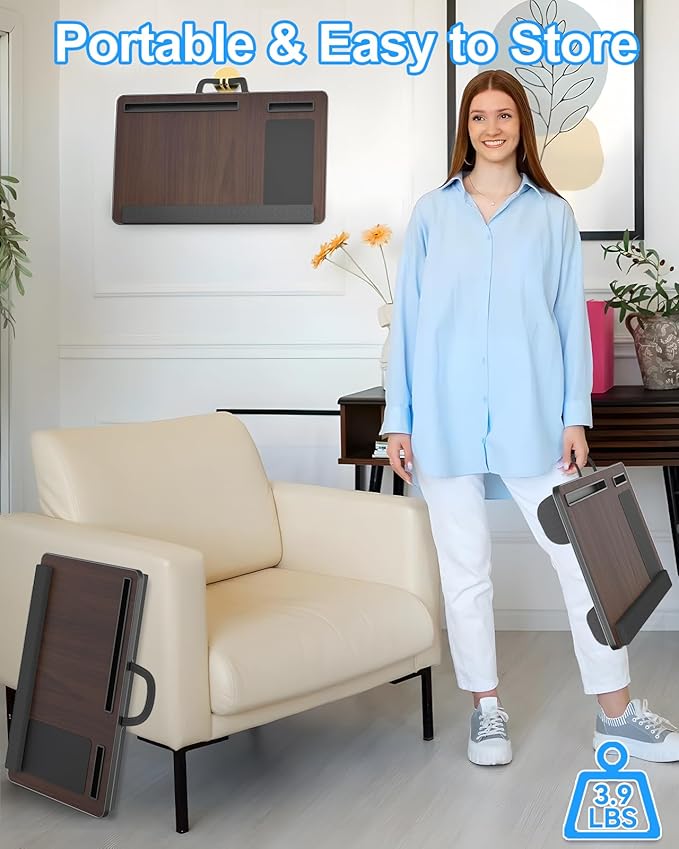 Laptop Lap Desk, Portable Large Laptop Desk for Bed, Up to 17 in Lap Table with Wrist Rest, Mouse Pad, Tablet Phone Slot, Portable Handle, Lap Tray with Cushion (Dark Brown)