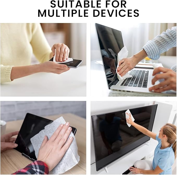 - Multi-Device Compatibility Screen Cleaner Wipes- Superior Computer Wipes and TV Cleaner: From your flat screen TV to your precious smartphone, EVEO Electronic Wipes are the universal solution. As a specialized TV cleaner for smart TVs and a gentle computer screen cleaner, these wipes ensure that every pixel on your electronic devices is as clear as the day you bought them. Use EVEO to clean multiple screens—without any worry.