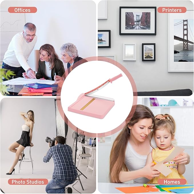 Paper Cutter, Paper Slicer with Safety Guard and Blade Lock, 12" Cut Length Guillotine Paper Cutter with 16 Sheet Capacity, Paper Cutters and Trimmers for Cardstock Cardboard (Pink)