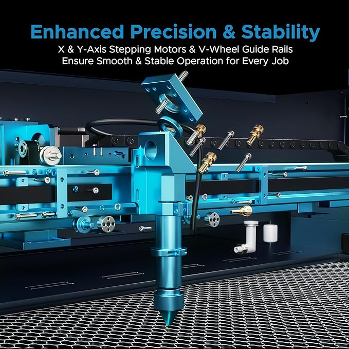 - Consistent Performance: The X and Y-axis stepping motors, in combination with V-wheel guide rails, ensure steady, controlled movement, preventing misalignment or shaking so every engraving comes out clean and professional