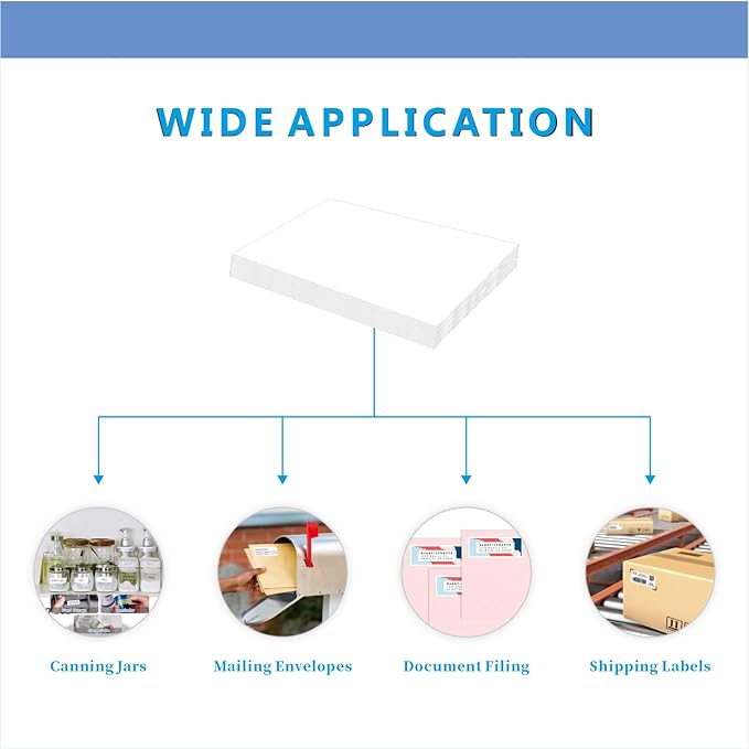 - 📄【MULTIPURPOSE LABELS】--JIQEZNL upgraded address labels, a best product to labels for shipping and mailing envelopes, return address labels; Organizing household items, canning jars, mugs, clothes and plastic containers labels. Even can be used as a writing label for classroom organization, DIY stickers, price labels, name tags and document filing. An ideal gift for your friends and family at home, school office and library