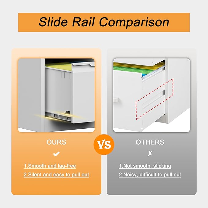 - 🔖【SMOOTH MUTE SLIDE RAILS】: Our metal file cabinets are made with full retractable mute slide rails, open and close smoothly, easy to pick up and put down folders without noise. Perfect for office, home and school use. And the vertical appearance design can maximize the effective use of space, so that your space is not wasted!