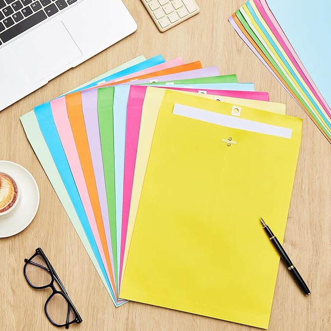 Geyee 100 Pcs Clasp Manilla Envelopes 10 x 13 Inch Gummed Colored Envelopes for Storing or Mailing for Home Office Business Supplies(Multicolor)