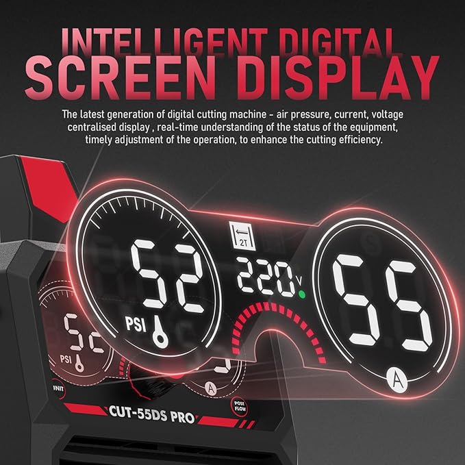 - POWERFUL CUTTING CAPACITY: : Featuring a substantial 55A high current for maximum power, it delivers deeper cutting thickness. CLEAN CUT: 1/3''@110V 1/2''@220V // MAX CUT: 1/2''@110V 4/5''@220V. Powered by international leading MCU intelligent digital control technology, it ensures deep, precise, and clean results every time.