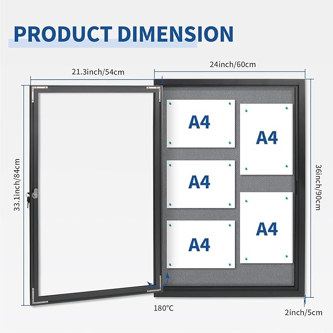- Simple Installation: Measuring 36x24 inches, our enclosed bulletin board is designed to fit seamlessly into your space. Complete with mounting tools and instructions, installation is quick and straightforward on any wall. Choose between vertical or horizontal mounting for added flexibility.