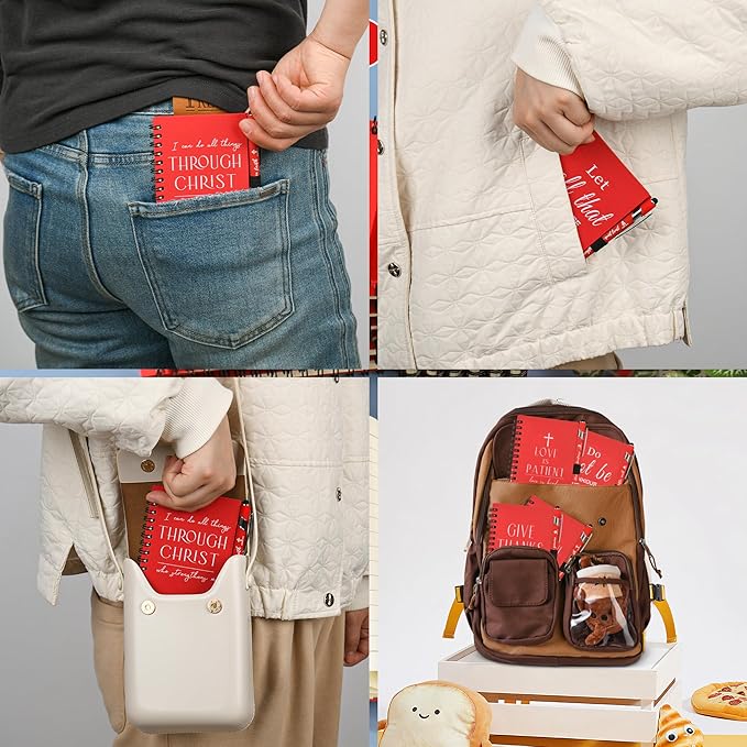 - Product Quantity: You will receive 30 sets of Christian Notebook and Christian Pens, featuring uplifting Bible verses printed on them. Each collection includes 10 different designs of Christian Notebook and 10 styles of Christian Pens, totaling 30 sets (30 mini notebooks and 30 Christian Pens)