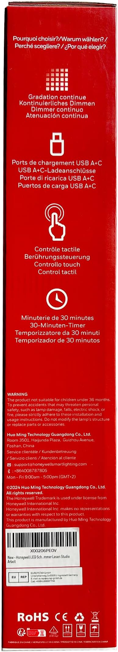 - 【Intelligent Touch for All Convenient】 The smart touch reading light features a touch-sensitive panel design.Switch brightness levels and lighting modes at the touch of a button with a simple swipe of your finger.Honeywell H2 office desk lamp is equipped with a professional work lighting mode, providing convenient lighting for your work and office life. The 30-minute auto timer and memory function make your lighting choices smarter and more convenient.