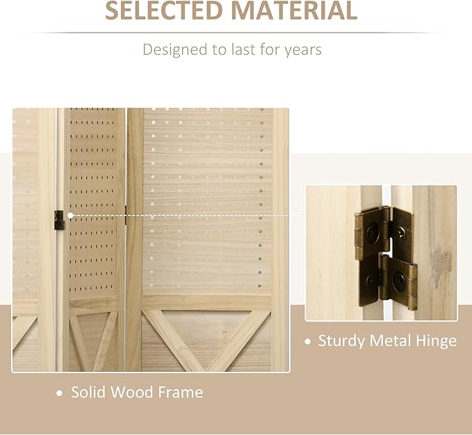 NicBex Room Divider 3 Panel Room Dividers with Pegboard Design Partition Room Dividers and Folding Privacy Screens 4.7 FT Wall Divider for Home, Office, Room Separation,45"W x 0.75"D x 57"H, Natural
