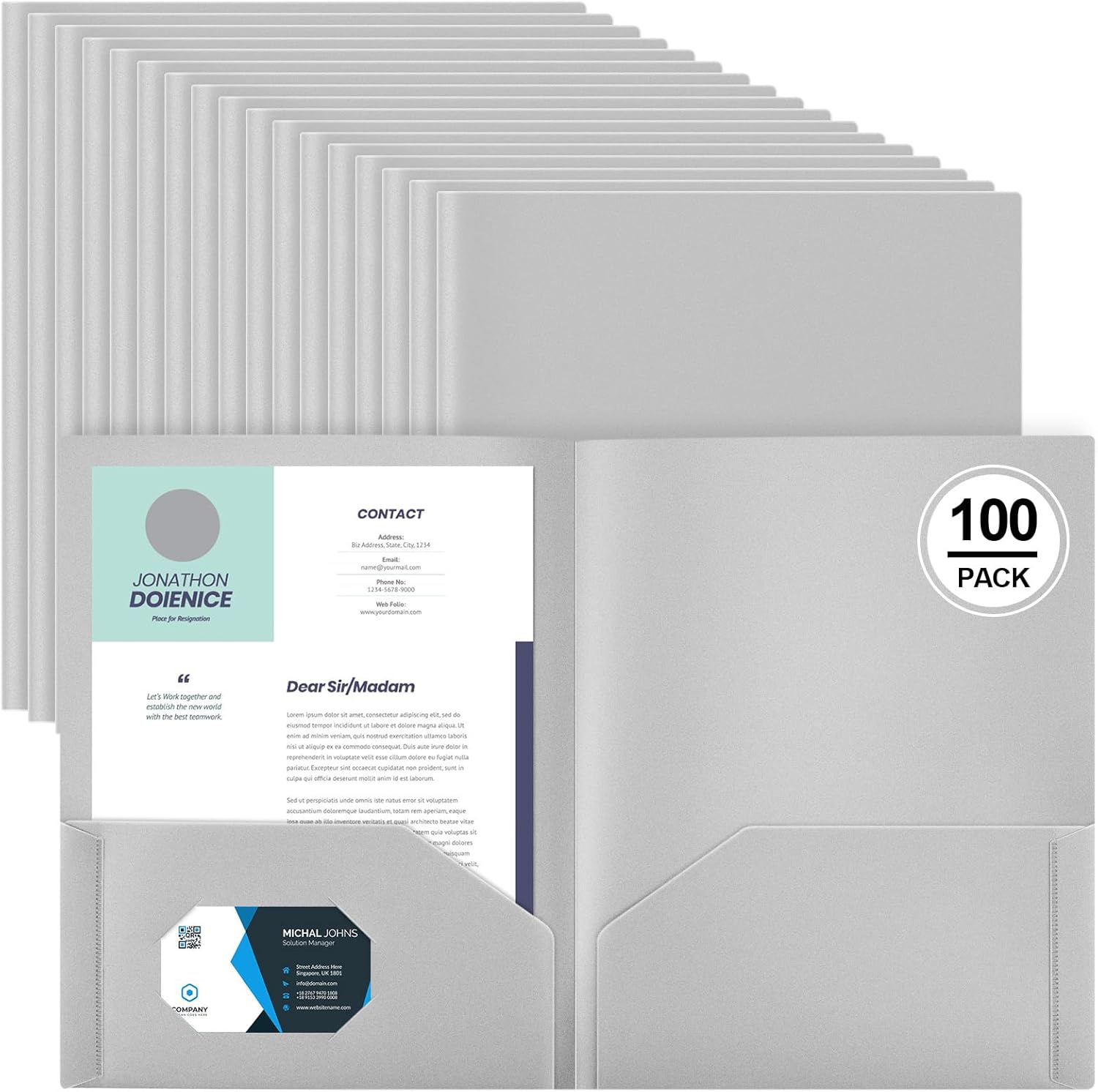 - Package Included: you will receive 100 grey pocket folders, each folder is designed with 2 pockets, suitable for holding 8.5 x 11 inch letter size paper, each pocket can easily and neatly stack 50 letter size pages paper, sufficient quantity to meet your daily use and replacement needs