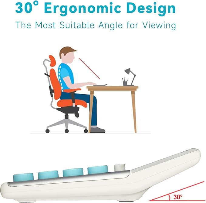 - 【User-Friendly Design】With large buttons and a tilted display and surface, the design prioritizes usability by reducing input errors. This is especially beneficial for elderly users or those who need to perform quick calculations, ensuring accuracy with every keystroke