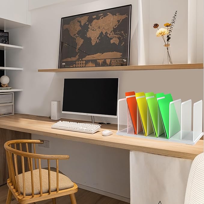 Kuntine.B Desk File Organizer Upright Mesh Desktop Organizer File Sorter Office Organization File Holder for Home, Office & Classroom (White, 1 Pack 7-Section)