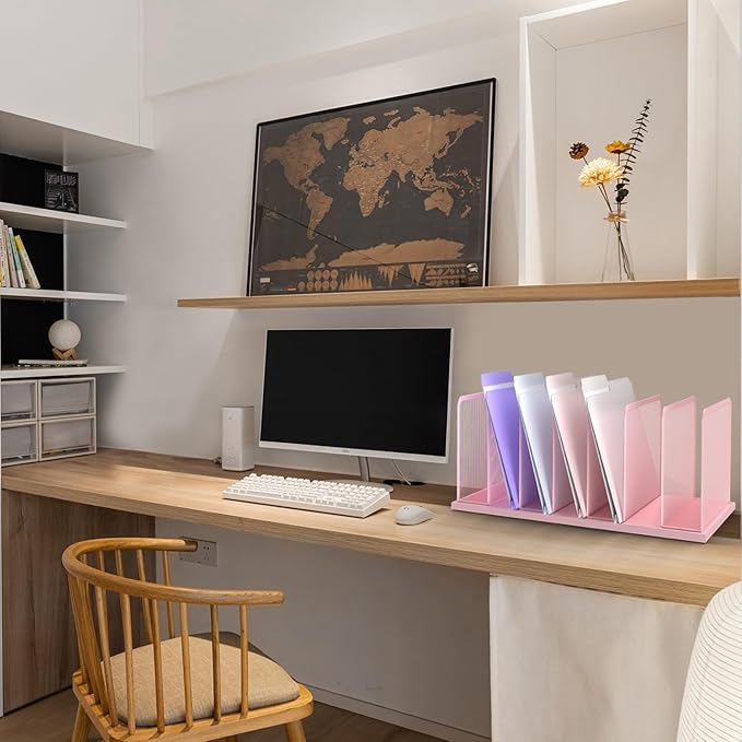 Kuntine.B Desk File Organizer Upright Mesh Desktop Organizer File Sorter Office Organization File Holder for Home, Office & Classroom (Pink, 2 Pack 7-Section)