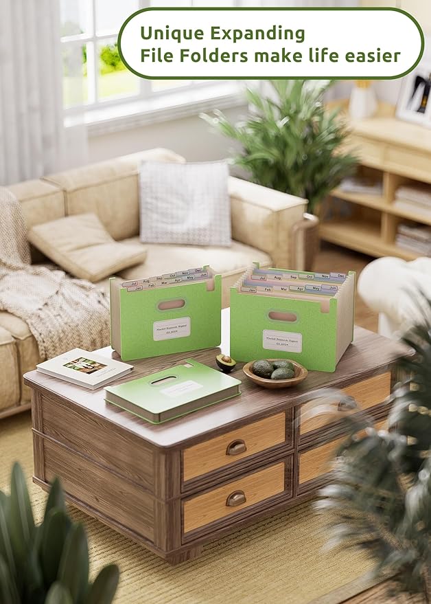 Accordion File Organizer, 12 Pockets Wheat Straw Expanding File Folders, Upright & Open Top, Monthly Bill Receipt Organizer, 100% BPA Free, Return to Nature, Healthy Living, Letter/A4 Size-Mint Green