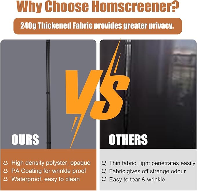 - Upgraded & Long service life: The room divider frame is made from φ20mm steel tubes with frosted coating to resist corrosion and rust. The 240gsm thicker cloth provides superior concealment and is impervious to light. The PA coating makes the polyster fabric wrinkle-proof and tear-proof. The upgraded room divider is easy to clean, just wipe gently with a cloth