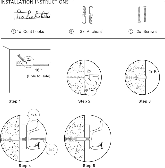 - 【24 Inches Long Wall Coat Rack】 Coat hooks wall mount 16 inch stud, It's just the right size for family, classroom or office, and holds all of their winter coats and jackets, backpacks and bags.