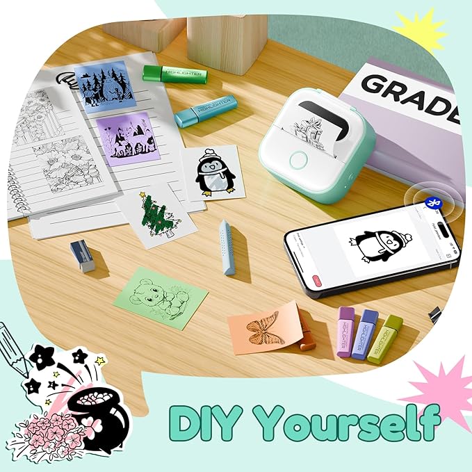 - Multi-functional thermal mini printer: The Y02C sticky note printer is suitable for use in the office, DIY projects, home, and study. In the workplace, it can be used for to-do lists, memos, addresses, receipts, and in daily life, it can be used for bookmarks, greeting cards, label recognition, coloring, letter learning, and card recognition, among other purposes