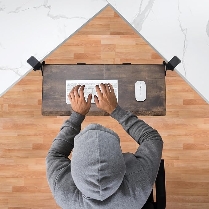 - ERGONOMIC KEYBOARD TRAY: It’s essential to have the right posture to protect your wrist, arms, neck, and shoulders when you’re at your desk. An under desk keyboard tray promotes an optimal typing position. It ensures you sit safely and can protect against neck and shoulder pain, wrist strain, and even RSI