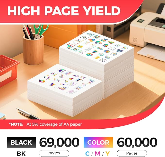 - High-Yield: up to 28,000β¬ pages per GPR-55 Black and 25,500 pages per GPR-55 Color (Total 104,500 pages, A4 5% Coverage),with High Yield Version GPR55 GPR-55 toner Cartridges.
