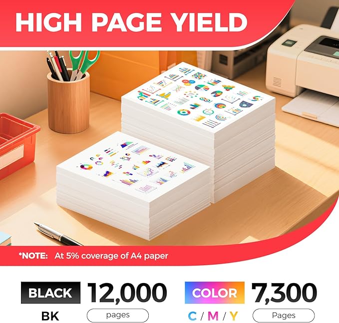 - High-Yield: up to 12,000β¬ pages per CRG-034 Black and 7,300 pages per CRG-034 Color (Total 33,900 pages, 5% coverage),with High Yield Version CRG034 toner Cartridges.