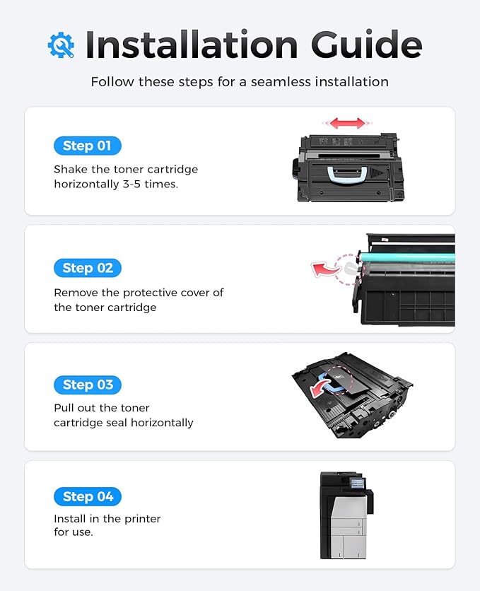 - The latest chip version: The JCTONER toner cartridges are equipped with the latest version of built-in chips, ensuring perfect compatibility between each toner cartridge and the printer. This enables you to print efficiently while maintaining stability and reliability, making installation convenient without the need for manual adjustments. All JCTONER toner cartridges have undergone strict quality testing and have obtained ISO9001 certification. High-quality toner cartridges can meet the demand for high printing volume. The fine toner ensures clear and stain-free printing results and extends the lifespan of the printer. You can purchase with confidence.