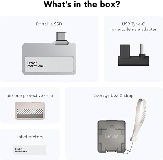 Lexar 2TB Professional Go Portable SSD, Supports Apple 4K 60fps ProRes, Up to 1050MB/s, USB 3.2 Gen 2, Rugged, IP65, Ultracompact, Compatible w/iPhone 15/16, External SSD (LSL400X002T-RNSNU)