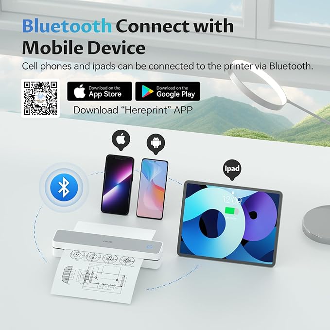 - High Compatibility:Portable wireless printer are generally compatible with a variety of operating systems and applications,including iOS,Android,and Windows,MacBook.The thermal printer supports a variety of paper sizes,including 8.5"x11" US Letter & Legal,A4 & A5,and 2",3",and 4" thermal paper.(note: unlike traditional printers, this thermal printer only supports thermal printing paper)
