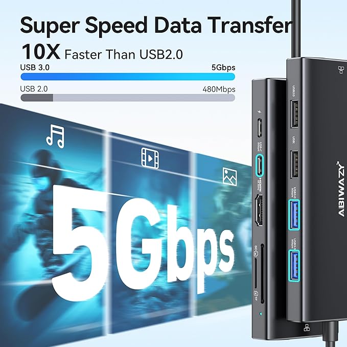 - Multiple USB C USB A Data Ports: usb c hub multiport adapter comes with 3 USB 3.0 ports (1 USB C and 2 USB A) up to 5Gbp/s,transfer speed for quick data transfer & charging up to 5V@0.9A, 2 USB A 2.0 ports up to 480mbp/s,your can connect usb keyboard, mouse, usb driver, usb hard disks to your laptop easily via this macbook usb adapter. This macbook hdmi adapter only allows you to connect 1 HDD/SSD and this adapter won't support Apple USB super drive and the data usb c port is only for data transfer not for video output