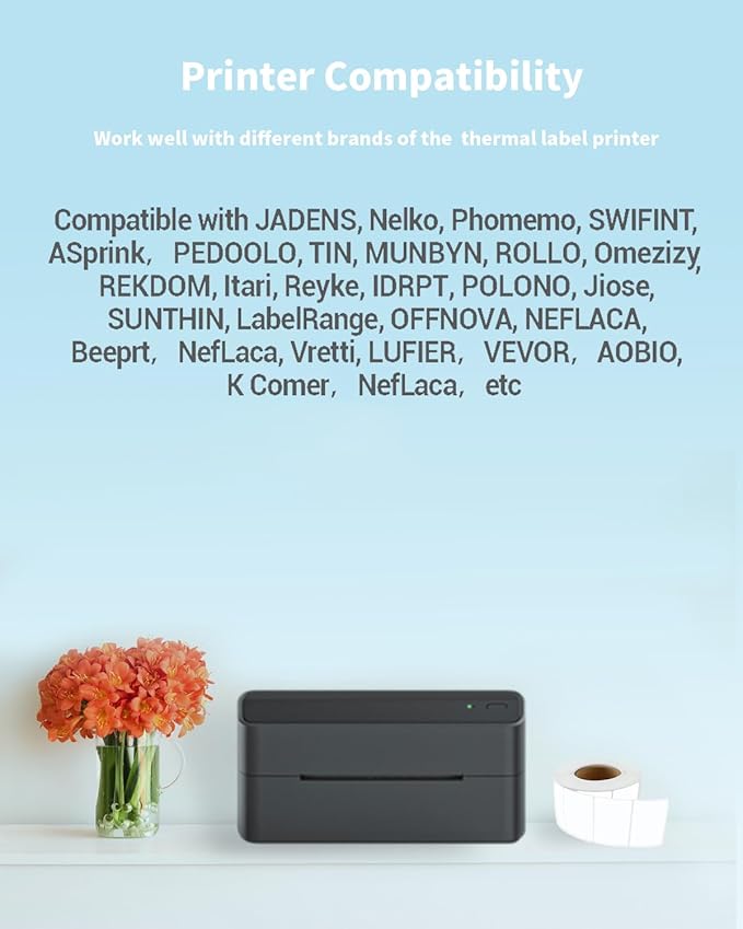 - 【 100% Compatible 】- Phomemo thermal labels compatible with MUNBYN, Nelko, JADENS, ASPRINK, ROLLO, OMEZIZY, ITARI, IDRPT, POLONO, JIOSE, K COMER, LABELRANGE, OFFNOVA, PHOMEMO, Dymo, Brother, NEFLACA,BEEPRT, NefLaca and other direct thermal printers.