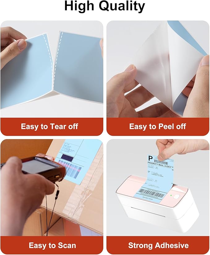 Phomemo 4x6 Thermal Labels for Shipping Label Printer - 500PCS Blue Mailing Labels - 4x6 Direct Thermal Label Fanfold Compatible with Rollo,MUNBYN,JADENS,POLONO,Nelko - Water/Oilproof - NO BPA/BPS