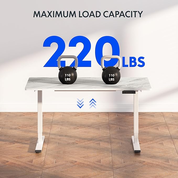 - 【QUIET & SMOOTH DUAL MOTORS】 Effortlessly lift and lower the electric standing desk with whisper-quiet dual motors that produce less than 50 dB of sound. These motors can handle 65% more weight (up to 220 lbs total) than single-motor desks, ensuring minimal noise disruption, even in the quietest room.