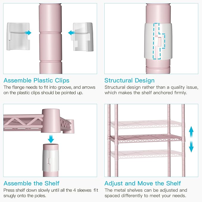- [Easy to Assemble]: A rubber hammer (NOT INCLUDED) is recommended to gently hit the shelves to make it more compact. Easy assembly, no other tools needed