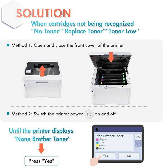 - With Chip: Compatible for Brother TN229XL Toner Cartridges are alread installed with chips, No need to transfer original TN 229XLBK/C/M/Y or TN229BK/C/M/Y High Yield Toner Cartridge chip to them.