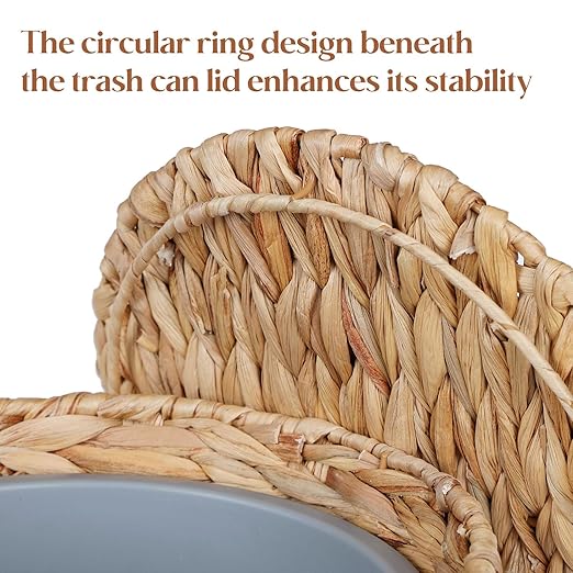 - Natural Material: Carefully handwoven from FSC-Certified water hyacinth fiber, this wicker trash basket adds an eco-friendly charm to your space, seamlessly blending sustainability with everyday functionality.