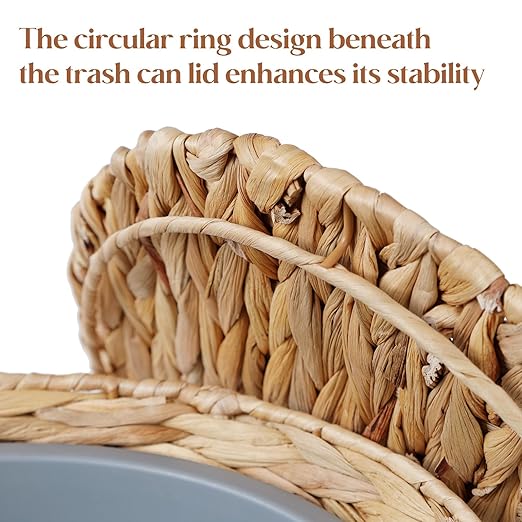 YANGQIHOME Wicker Trash Can with Lid - Water Hyacinth & Seagrass Garbage Can - Handwoven Wicker Waste Basket for Bathroom, Bedroom, Office, Living Room, Laundry Room - 3.8 Gallon