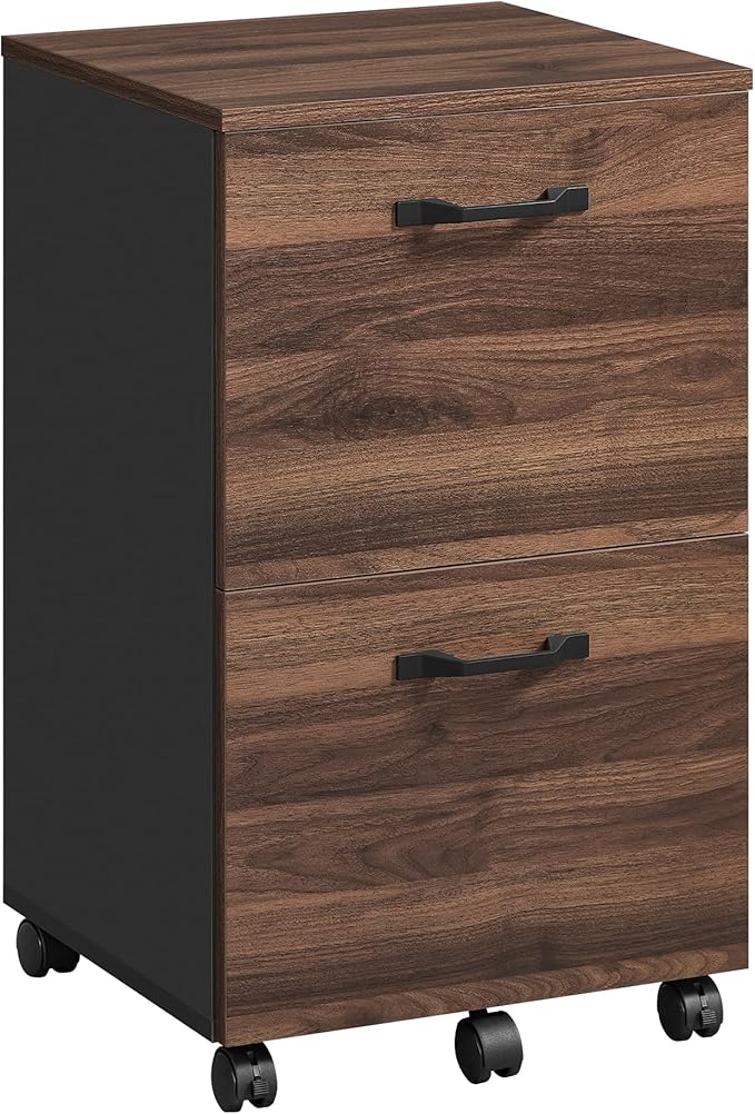 VASAGLE 2-Drawer File Cabinet, Small Rolling Filing Cabinet for Home Office, Printer Stand, for A4, Letter-Size Documents, 15.7 x 16.5 x 27.6 Inches, Natural Walnut and Ink Black UOFC040K01