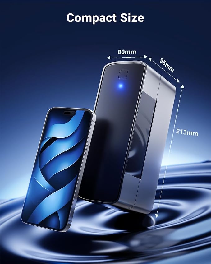 - Compact Design and Robust Quality - The Bluetooth thermal label printer 4x6 is lightweight, weighing just 1.59 lbs, with dimensions of 3.14"D x 8.38"W x 3.7"H. Its compact size allows it to fit easily in your backpack. Each product undergoes rigorous quality inspection before leaving the factory, ensuring reliability and durability