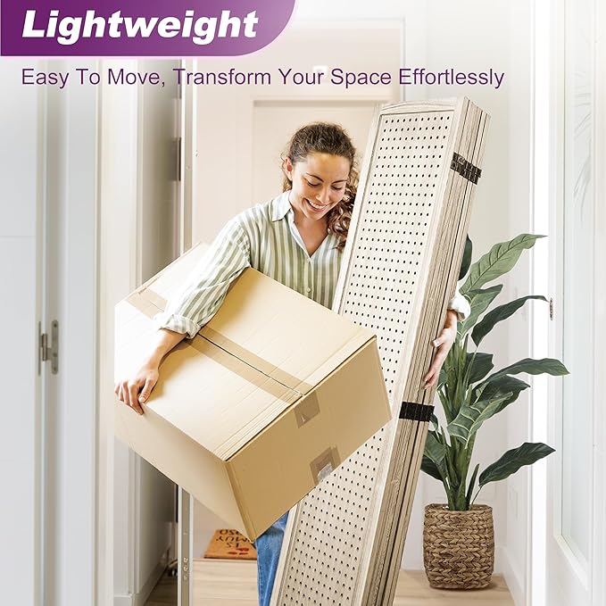- Pegboard Display Design:This freestanding pegboard divider is an efficient solution for display and partition needs. Acting as a room separator, it allows you to maximize display space by inserting hooks or nails into the small holes, making it an ideal wall divider for room separation. Use it to hang lightweight items like clothes, hats, or bags, adding both functionality and aesthetic appeal to your room dividers and folding privacy screens setup.
