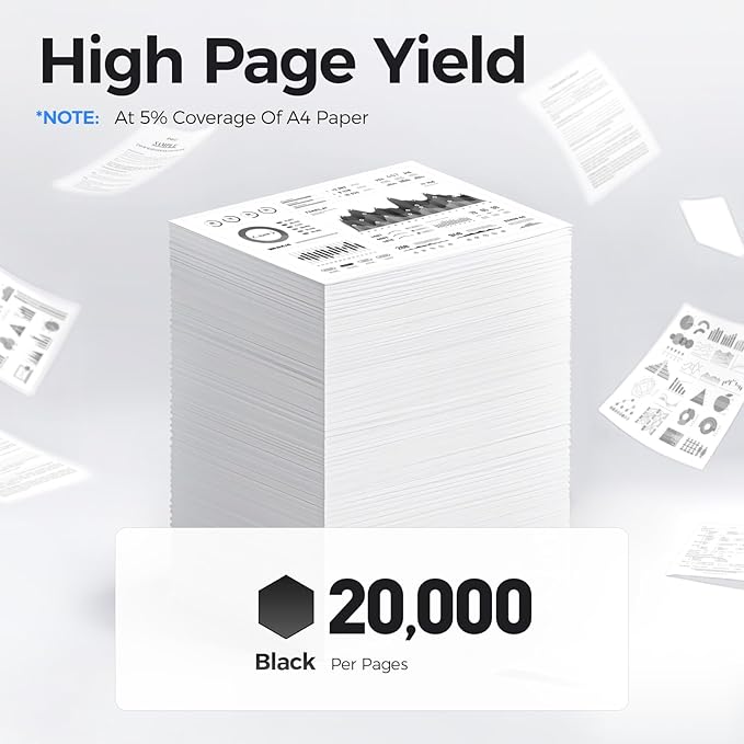 - High-Yield: up to 20,000 pages per B310/B315 Black (Total 40000 pages, 5% coverage).