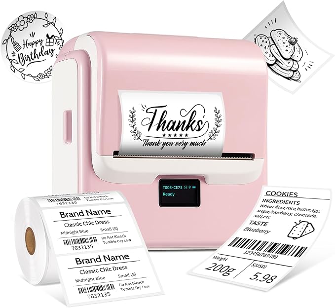 - Practical Screen Display: The T003 thermal printer with a LED screen enhances your printing experience with convenience and fun; It provides a clear view of the battery level, Bluetooth connection status, and printing status at a glance. Additionally, it allows you to select label types, set sleep timers, and schedule automatic shutdowns for optimal usability; For optimal performance, we recommend charging the printer before first use