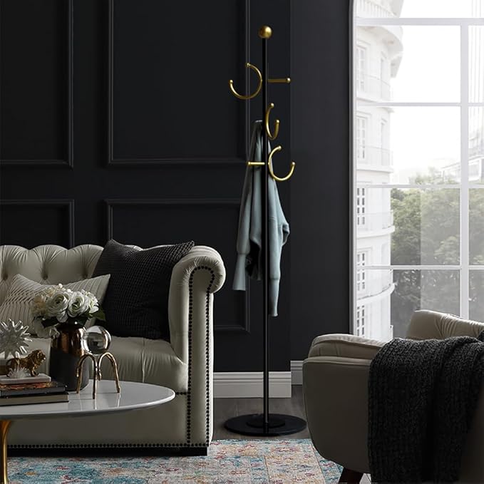 - 【Stable Marble Base】Anchored by a substantial marble base, the coat rack stands firm and steady, providing reliable support for multiple garments. The natural stone adds a touch of sophistication and ensures that the coat stand remains balanced, even when fully loaded with coats, hats, and scarves.