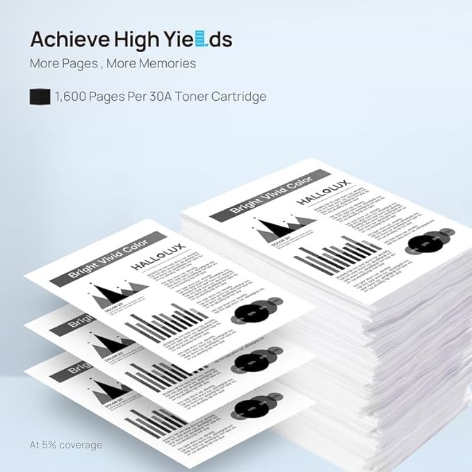 - High Yield: Our 30A 30X black toner cartridge creates rich black and prints up to 1,600 pages at 5% Coverage A4 paper.