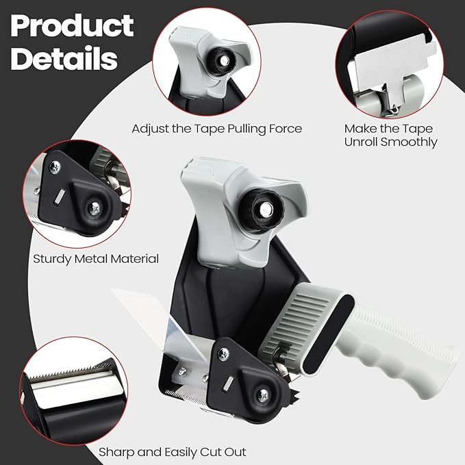 - Product Base Material: the 2 inch packing tape dispenser gun is made with this heavy duty metal mechanism and plastic surface, solid and sturdy; The tape gun handles are made of soft rubber, these packing tape gun are easy to use, and suitable for handling a lot of sealing, combining, reinforcing, and bundling operations
