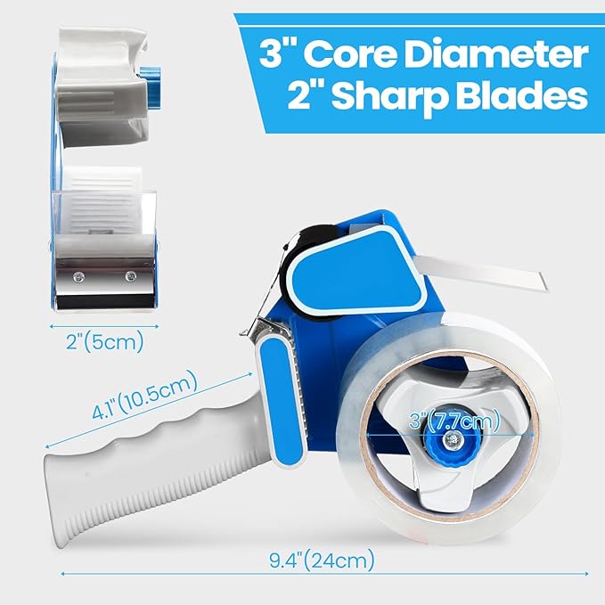 - Product Base Material: the 2 inch packing tape dispenser gun is made with this heavy duty metal mechanism and plastic surface, solid and sturdy; The tape gun handles are useful; These packing tape gun are easy to use, and suitable for handling a lot of sealing, combining, reinforcing, and bundling operations