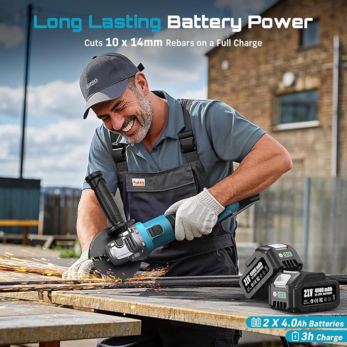 - What You Will Get: The Seesii brushless angle grinder kit includes: 2 x 4000mAh Batteries, 1 x Charger, 1 x Side Handle, 4 x Cutting Wheels, 4 x Flap Wheels, 1 x Wood Carving Wheel, 2 x Wheel Retainer Sets, 1 x Pair of Gloves, 1 x Pair of Safety Goggles, and 1 x Carrying Bag โ providing you with everything needed for a comprehensive grinding solution