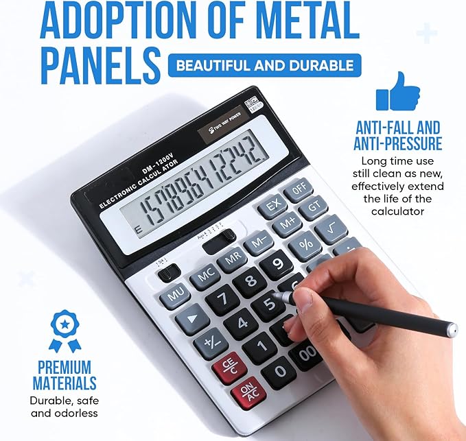 - DURABLE & ELEGANT METAL PANEL - Built with a premium metal panel, the Holifeos Desk Calculator combines durability with sophistication. Its sleek, modern design enhances any office, study, or business setting.