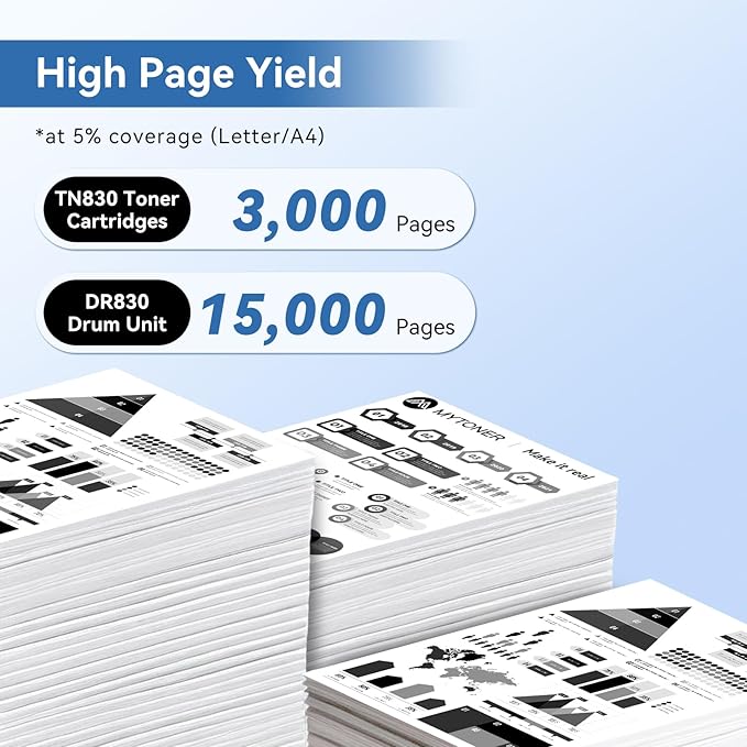 - 【 Page Yield】: TN-830 XL TN830XL Compatible for Brother Toner Cartridge Can Print Approximately 3,000 Pages, DR830 DR-830 Drum Unit Can Print Approximately 15,000 Pages (At 5% Coverage - Letter/A4)