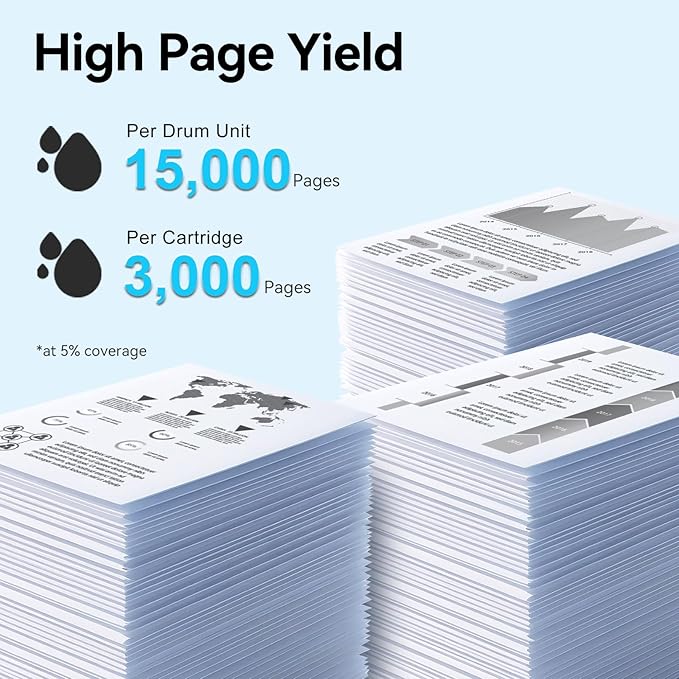 - Estimated Page Yield: Up to 3,000 pages per TN830XL toner and 15,000 pages per DR830 drum unit compatible for Brother DR830 toner cartridge (Letter/A4, at 5% coverage)