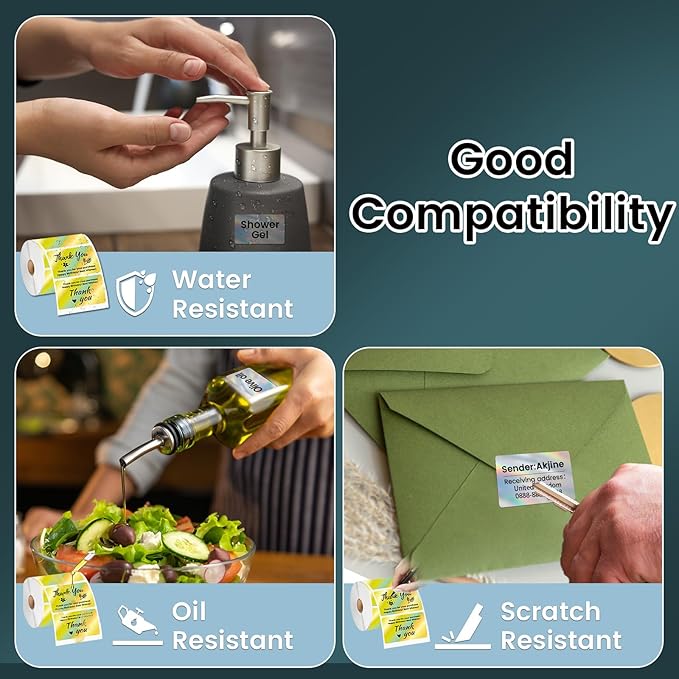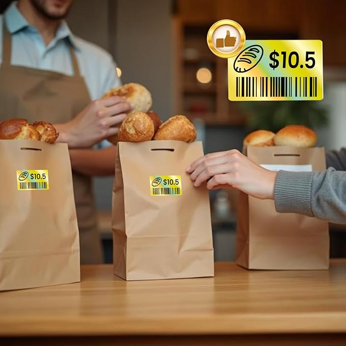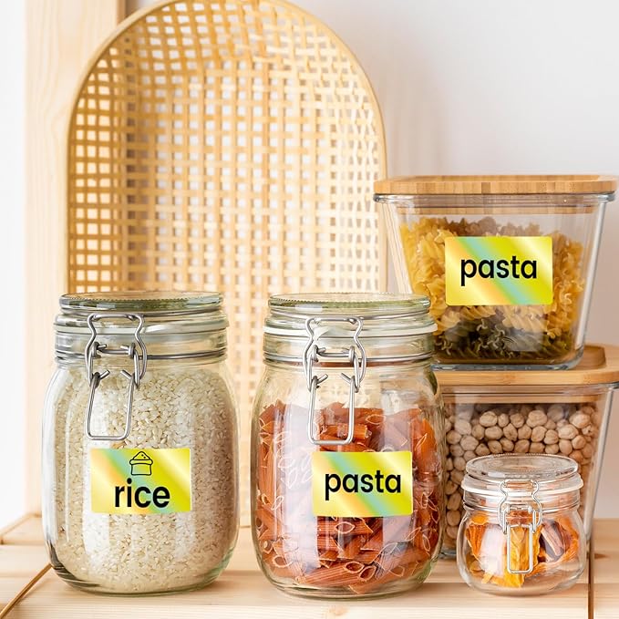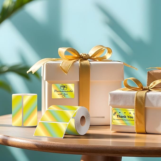 2.25x1.25 Inch Thermal Labels Gold, Holographic Sliver Barcode Thermal Labels for Thermal Printer and Small Business, Multi-Purpose Rectangle Stickers, 500 Sheets/Roll