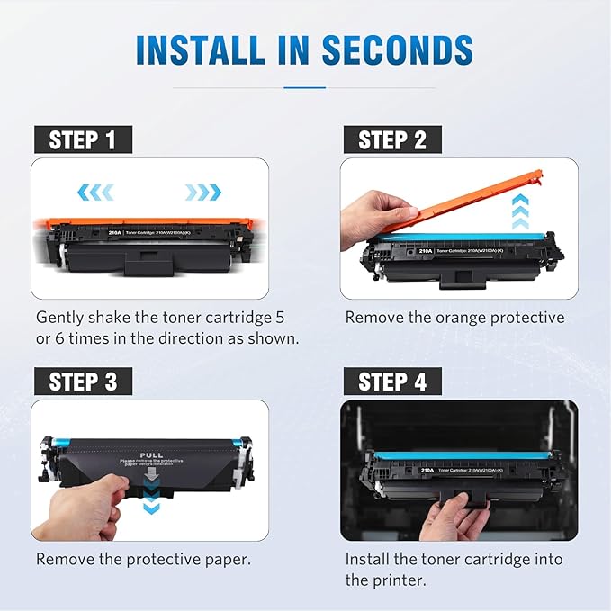 - Easy to install: All our 210A toner replacements for HP 210A toner cartridges set are tested to ensure full compatibility with your printer along with quality printing.