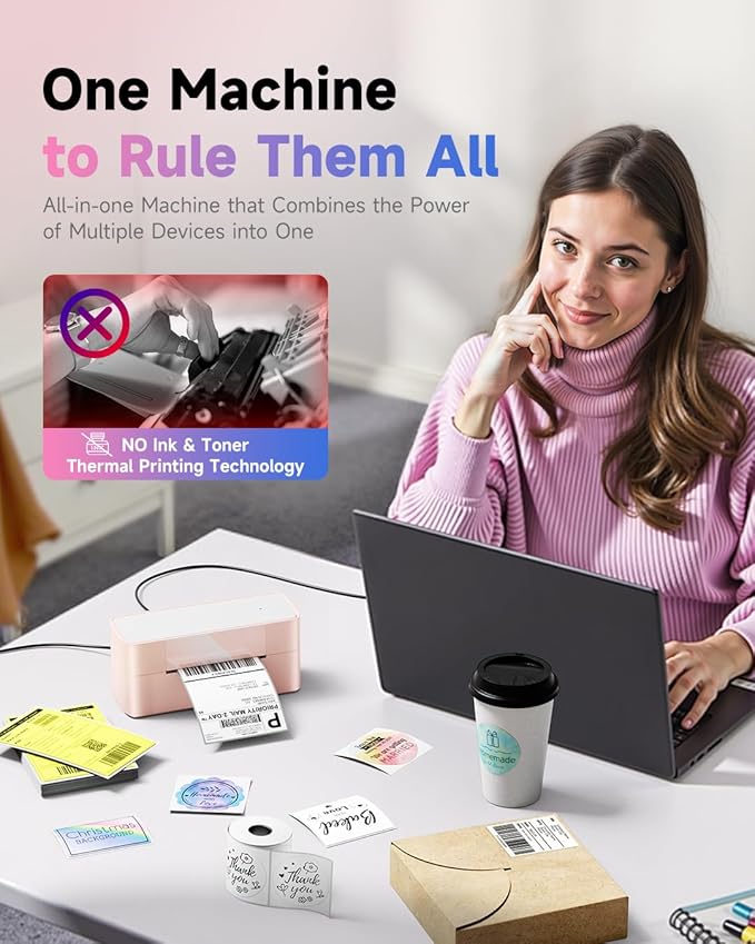 - EASY TO SET UP - If you have any questions or concerns about our pink thermal printer, please refer to our detailed operating manuals and video tutorials to resolve the issue easily. Whether you run a small home-based business or a large e-commerce warehouse, you can effortlessly manage high-volume printing needs, making your print jobs more efficient and manageable